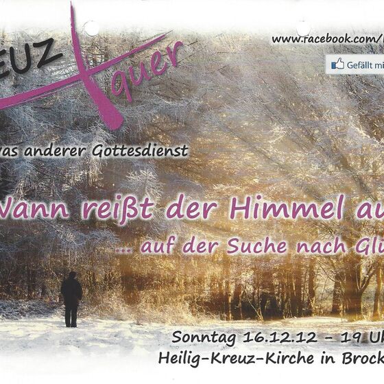 »KREUZ+quer« heißt der »Gottesdienst für neue Perspektiven« der seit 2010 in der Kirchenregion Brockel-Kirchwalsede-Visselhövede gefeiert wird.