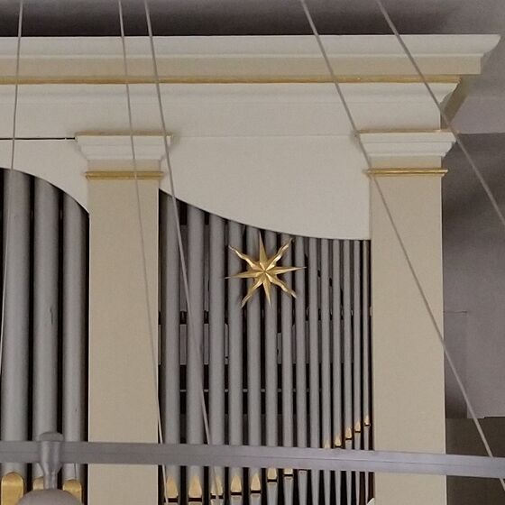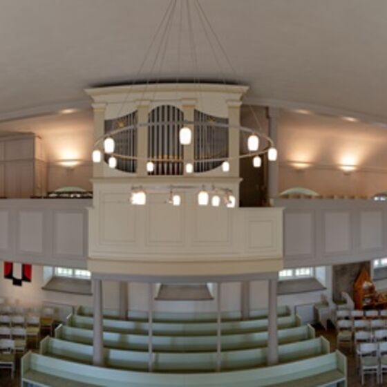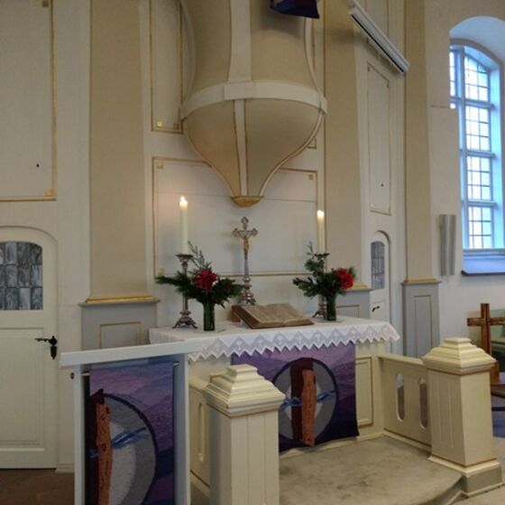 Heute lädt der Innenraum die Besucher freundlich zum Verweilen ein. Nicht durch goldene Engel besticht unsere Kirche, sondern durch Schlichtheit. 2013 entschied der Kirchenvorstand sich für den Abbau der Buchablagen vor den ersten Reihen, die die Gemeinde bis dahin vom Altarraum getrennt hatten - nicht zuletzt eine symbolische Entscheidung. Im selben Jahr wurde die Kirche mit zwei professionellen Projektionsgeräten ausgestattet, so dass vor allem bei großen oder alternativen Gottesdiensten auf Liederzettel und Gesangbücher verzichtet werden kann: Lieder, Texte und Bilder erscheinen für alle sichtbar auf großen Leinwänden rechts und links über dem Altar.